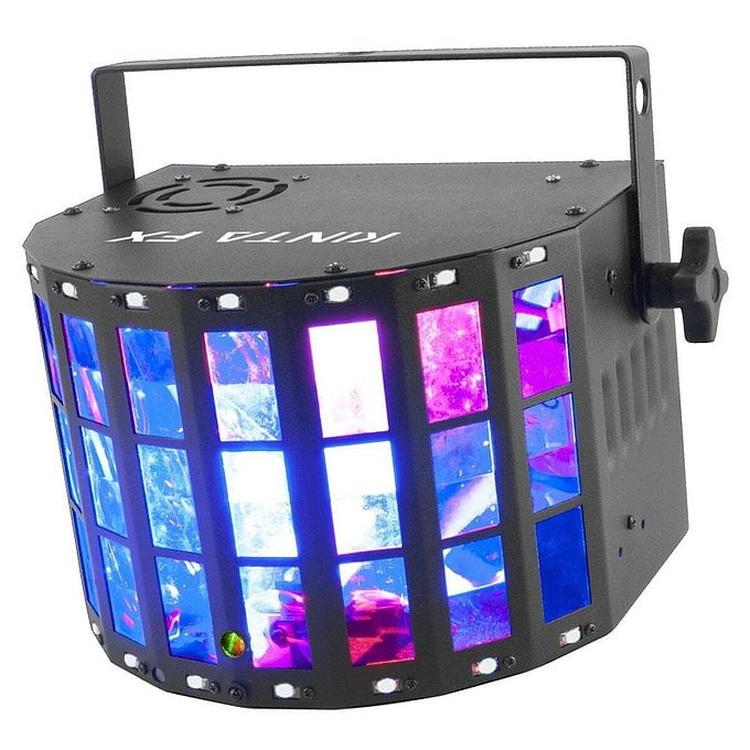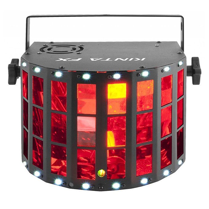 Kinta FX combines an LED derby effect, laser and SMD strobe in one compact fixture. These effects can be coordinated to create a variety of exciting looks that feature multicolored derby beams, dynamic strobes and chases plus hundreds of sharp red and green laser beams.